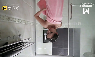Sweet Asian nubile with tiny boobs gets naked in the laundry bedroom